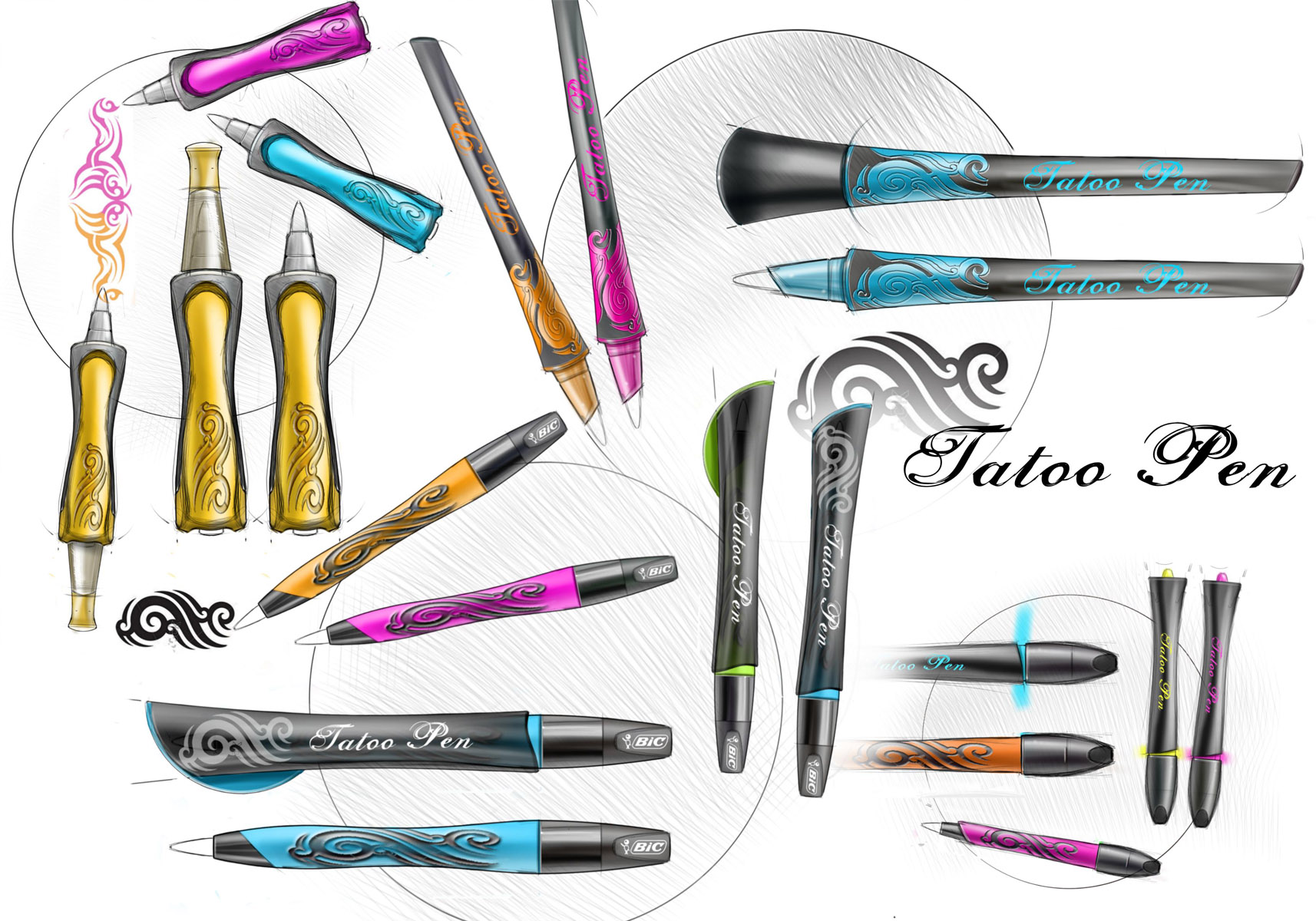Esquisses De l’esquisse libre crayonnée sur du calque au dessin executé plus finement sur palette graphique, l’idée prend forme. Pack briefBeginners rangeTatoo pen Pierre Henry – Colonne de rangementAppareil de remise en forme